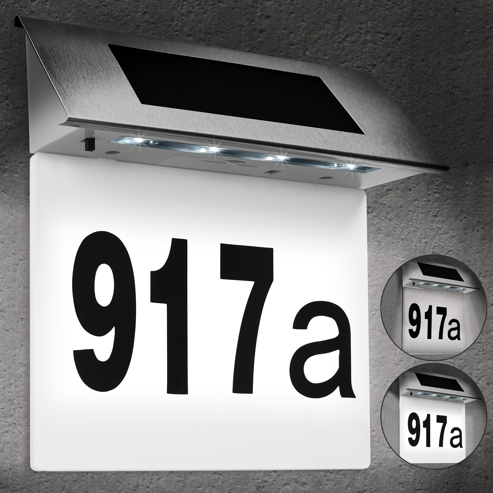Solarhausnummer aus Edelstahl mit 4 starken LEDs