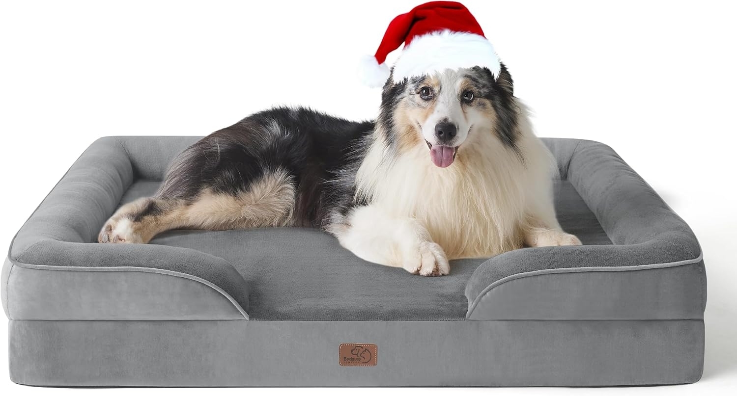 | Name | BEDSURE orthopädisches Hundebett Ergonomisches Hundesofa - 106x80 cm Hundecouch mit eierförmiger Kistenschaum für große Hunde, waschbar rutschfest Hundebetten, grau |