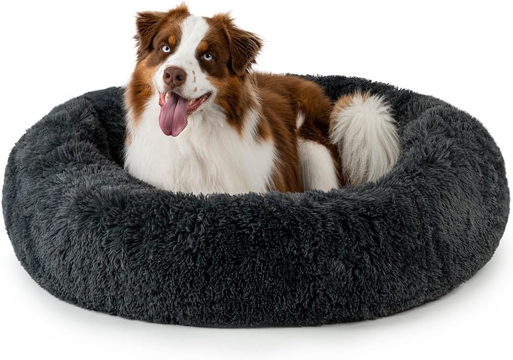 | Name | lionto Donutbett für Hunde und Katzen, Flauschiges Hundebett rund für kleine und große Heimtiere, Ø 100 cm, weiches Katzenbett aus kuscheligem Plüsch, Hundekissen mit extra Dicker Füllung, dunkelgrau |