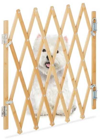 Das ausziehbare Hundeabsperrgitter in Natur schützt Ihre Vierbeiner effektiv vor Treppen und gefährlichen Stellen in der Wohnung. Es lässt sich flexibel in der Breite einstellen und einfach am Türrahmen oder an der Wand montieren. Das robuste Material aus Bambus und Eisen sorgt für Stabilität und Sicherheit. Mit einem platzsparenden Ziehharmonika-Design ist das Gitter ideal für schmale und breite Bereiche. **Highlights** - Ausziehbar für flexible Breitenanpassung - Robustes Material aus Bambus und Eisen - Sicher an der Wand mit beiliegendem Montagematerial befestigen - Platzsparend durch Ziehharmonika-Design - Keine Stolperkante dank schwellenfreiem Design **Produkteigenschaften** - Höhe: ca. 48,5 - 60 cm - Breite: ca. 17 - 96 cm - Gitterstäbe B: ca. 2 cm - Freiraum zwischen Stäben H x B: ca. 19x15 cm - Gewicht: ca. 1 kg - Farbe: Natur **Lieferumfang** - 1x Hundetürgitter - Mit Wandmontagematerial und Anleitung - Dekoartikel sind nicht im Lieferumfang enthalten