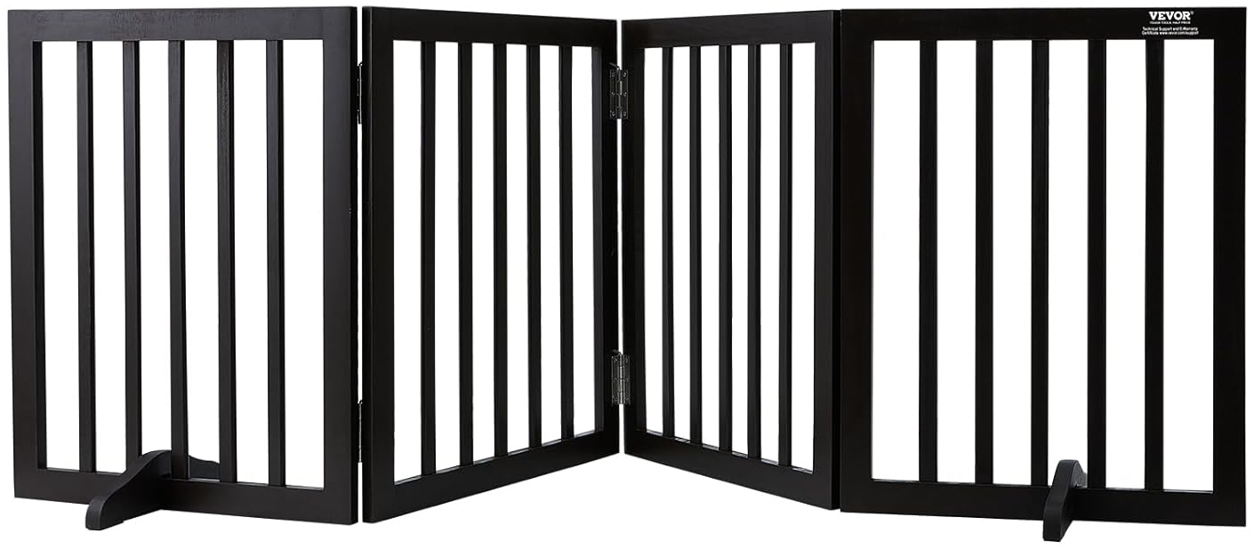 Das VEVOR freistehende Hundetor ist die ideale Lösung, um Ihrem Haustier klare Grenzen zu setzen. Mit einem eleganten Design aus stabilem Massivholz fügt es sich harmonisch in jede Inneneinrichtung ein. Das faltbare Gitter ist flexibel einsetzbar und lässt sich mühelos an verschiedene Durchgänge anpassen. Dank der rutschfesten Fußstützen bietet es außergewöhnliche Stabilität und ist in nur 30 Sekunden montiert. **Highlights** - Elegantes Design aus stabilem Massivholz - Flexibles Scharniersystem mit Schnellverschluss - Rutschfeste Fußstützen für hohe Stabilität - Geräuscharme Fußpolster zum Schutz des Fußbodens - Einfache Montage in nur 30 Sekunden **Produkteigenschaften** - Maße (BxH): 20x24 Zoll (508x610 mm) pro Gitterelement - Gesamte Breite: 80,3 Zoll (204 cm) - Anzahl der Elemente: 4 - Faltbar und platzsparend verstaubar **Lieferumfang** - 1 x freistehendes Hundetor (4 Elemente) - Montageanleitung - Ausschluss von zusätzlichem Zubehör