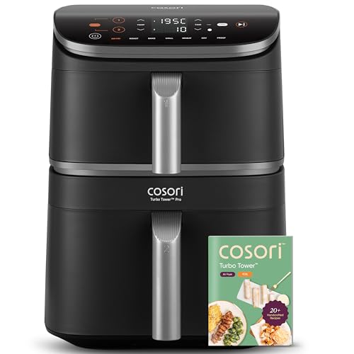 Black Deal in HeißluftfritteusenCOSORI Turbo Tower 10,8 L Dual-Kammer HeißluftfritteuseDual Blaze, keramikbeschichtet, DC-Motor 7 Programme, platzsparend