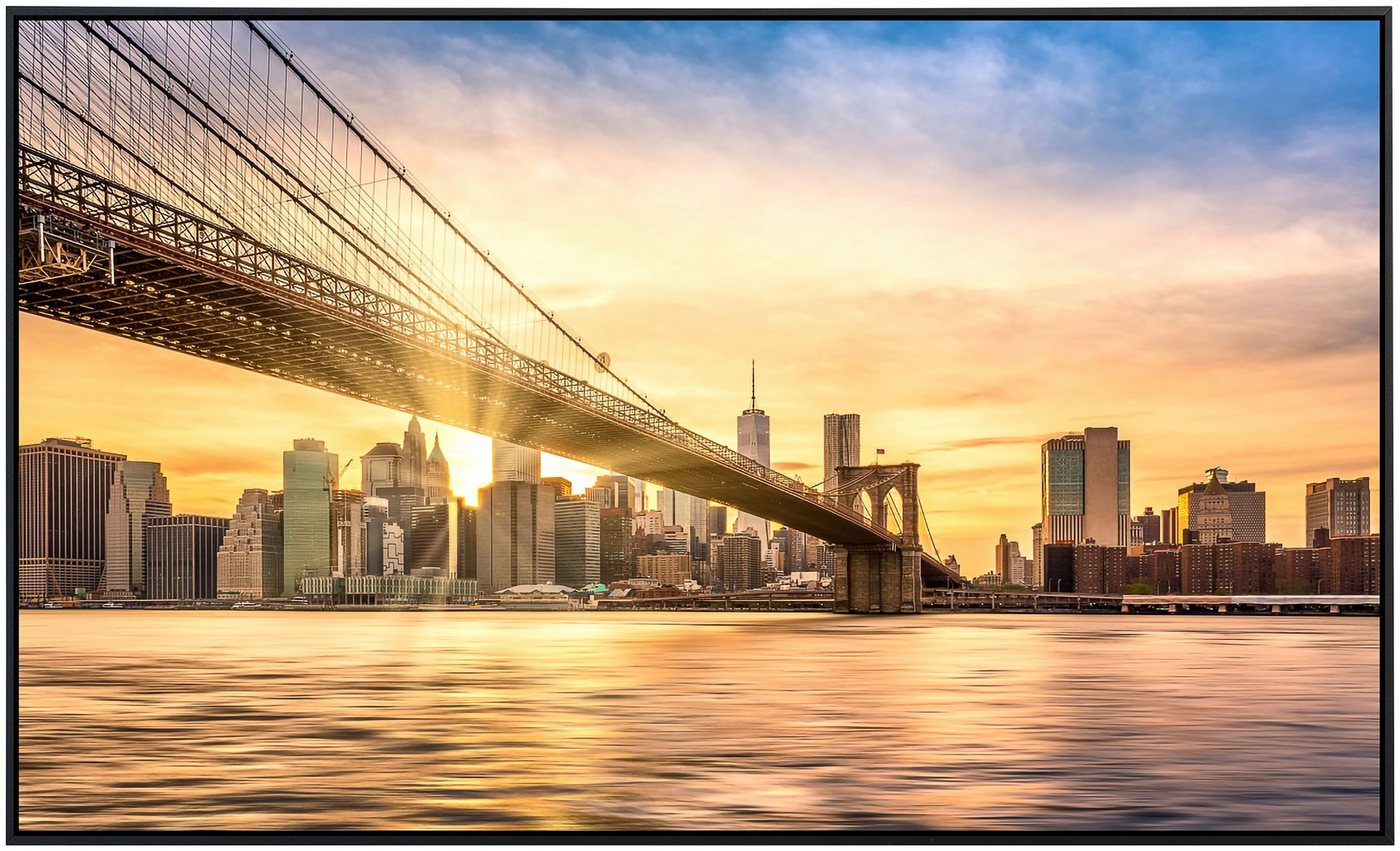 Papermoon Infrarotheizung 'Brooklyn Bridge Sonnenuntergang'sehr angenehme Strahlungswärme 900 W, 60 x 120 x 3 cm, Infrarotheizung