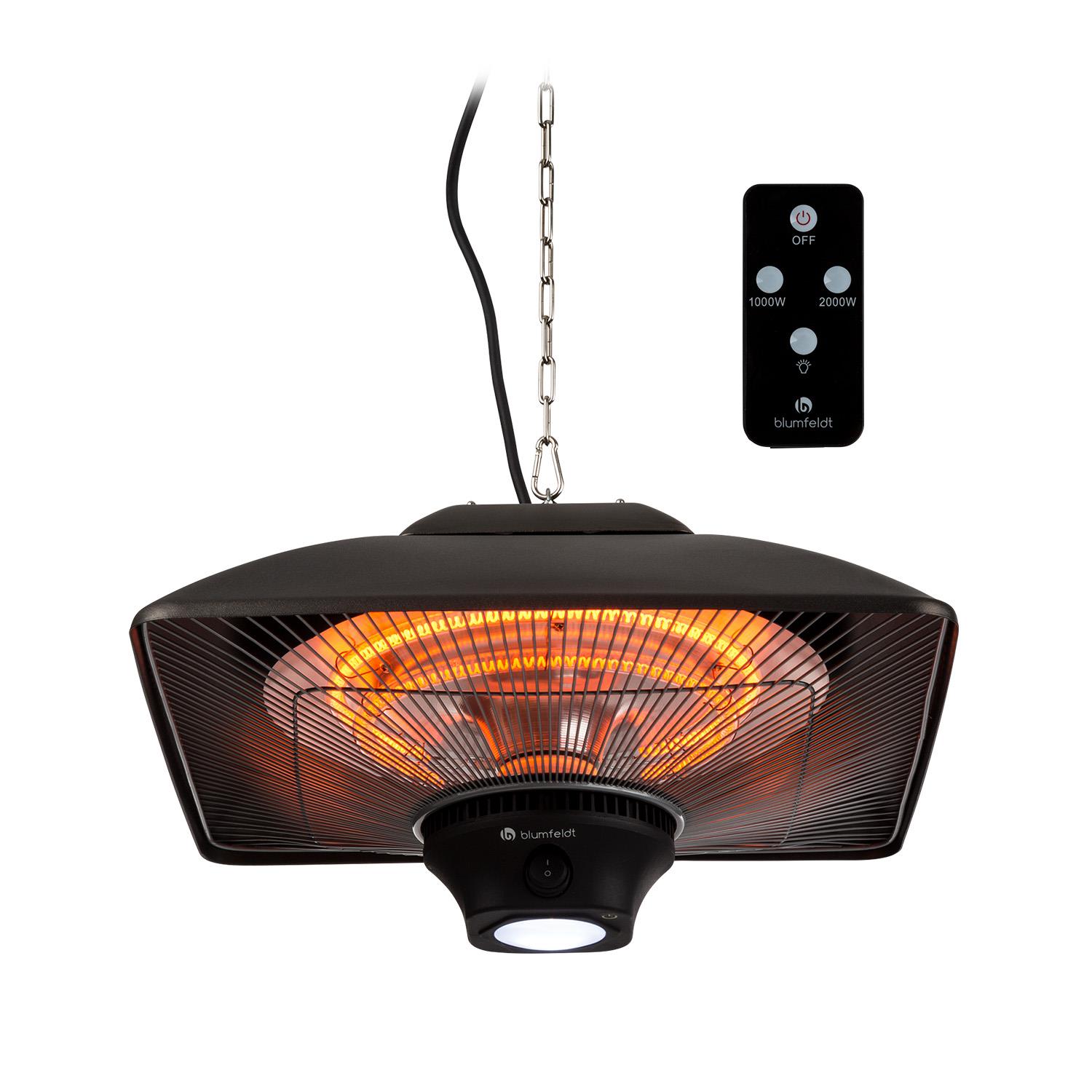 - Der blumfeldt Heat Square Terrassenheizstrahler bietet eine Heizleistung von bis zu 2000 Watt und ermöglicht eine schnelle Wärmeabgabe ohne lange Aufwärmphase.