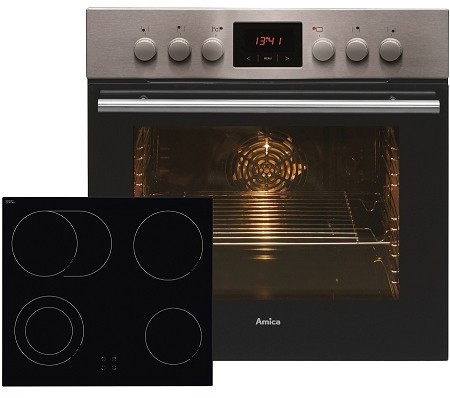 Amica EHC 12550 EHerd-Set, A, Einbaugerät, Betriebsart Ofen elektrisch, Betriebsart Kochfeld elektrisch, Anzahl Kochfelder 4, Volumen 65 l, Breite 59,5 cm,Selbstreinigung ja, hydrolytische Selbstreinigung