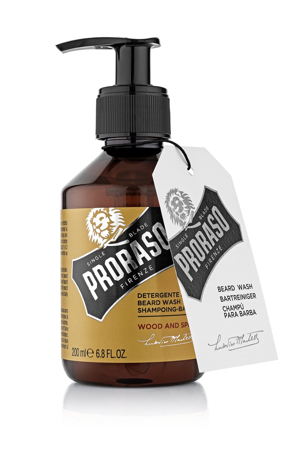 - Der Proraso Beard Wash Wood & Spice reinigt den Bart und die darunterliegende Haut auf sanfte Art