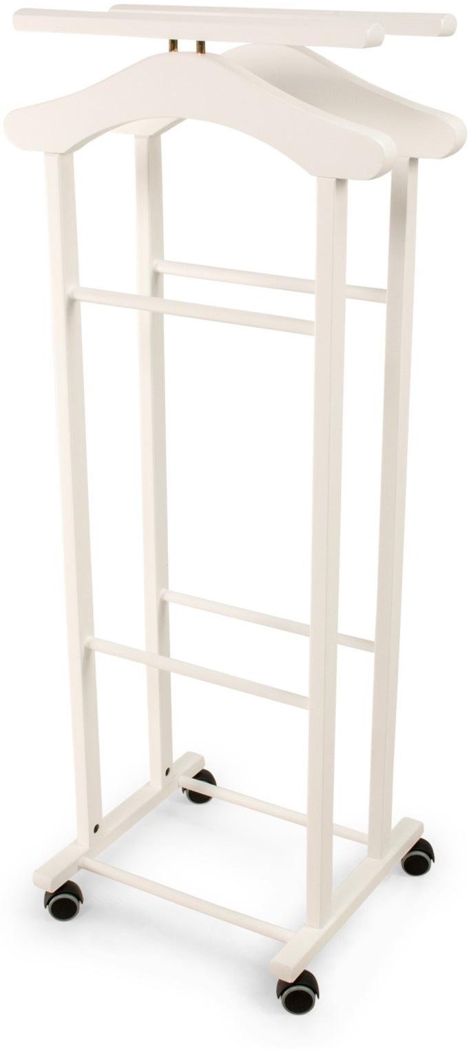Der Arredamenti Italia Herrendiener für Schlafzimmer CLEVER ist ein praktisches und stilvolles Möbelstück aus massivem Buchenholz in Weiß. Mit schwenkbaren Rollen aus Gummi lässt er sich mühelos im Raum bewegen. Ausgestattet mit 2 Kleiderbügeln und 2 Kleiderstangen für Hosen, sorgt er dafür, dass Ihre Kleidung immer griffbereit ist. Die Montage erfolgt einfach anhand der beiliegenden Anweisungen. **Highlights** - Stilvoller Herrendiener für das Schlafzimmer - Aus massivem Buchenholz gefertigt - Mit schwenkbaren Rollen für einfache Umpositionierung - Inklusive 2 Kleiderbügeln und 2 Kleiderstangen für Hosen - Einfache Montage mit Anweisungen **Produkteigenschaften** - Material: Buche-Massivholz - Farbe: Weiß - Abmessungen: 44 x H107 x P35 cm - Hersteller: ARREDAMENTI ITALY GROUP SRL **Lieferumfang** - 1x Arredamenti Italia Herrendiener für Schlafzimmer CLEVER - 2x Kleiderbügel - 2x Kleiderstangen für Hosen