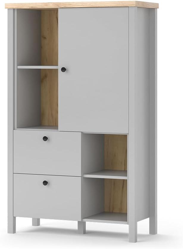 | Name | Vicco Schrank Melini, 85x139 cm, Grau Eiche, Wohnzimmerschrank, Anrichte, schmal |