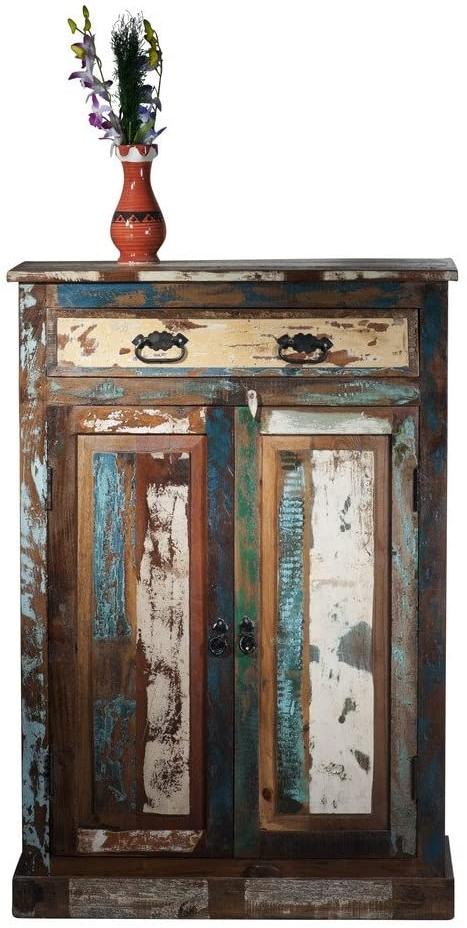 - Die RIVERBOAT Hochkommode besteht aus hochwertigem Altholz und bietet eine bunte Farbgestaltung.
