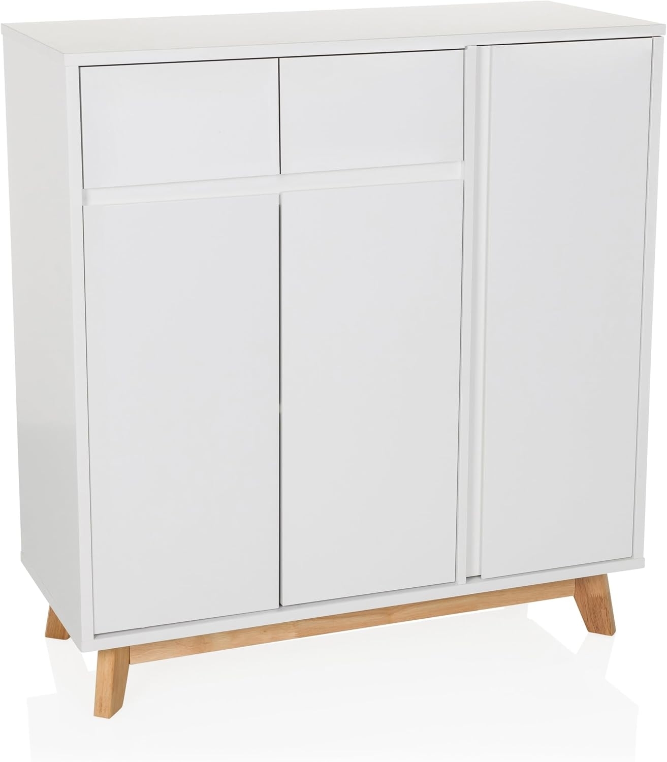 hjh LIVING Highboard mit 2 Schubladen3 Türen ESTHA Kommode im skandinavischen Stil, Soft-Close, griffloses Design, Schrank mit Holzbeinen, Weiß