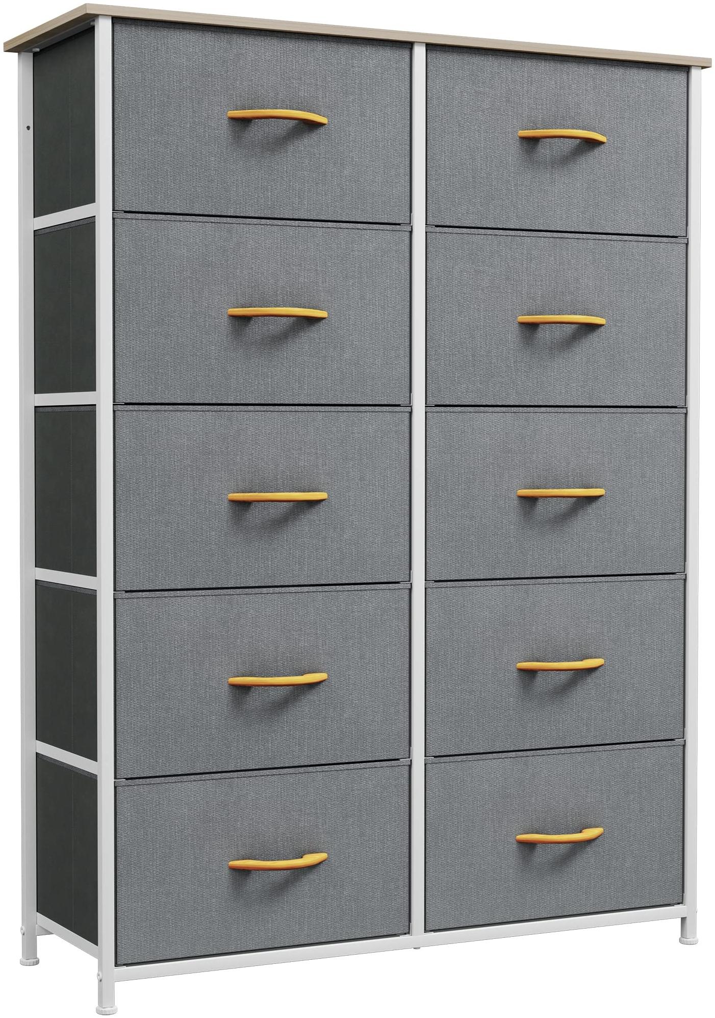 🔥 Deal in HighboardsYITAHOME Kommode mit SchubladenSchrank mit 10 Schubladen aus Stoff, Aufbewahrungskommode Industrial Stil für Schlafzimmer, Wohnzimmer, Kinderzimmer, Flur, Aufbewahrungsschrank (Grau)