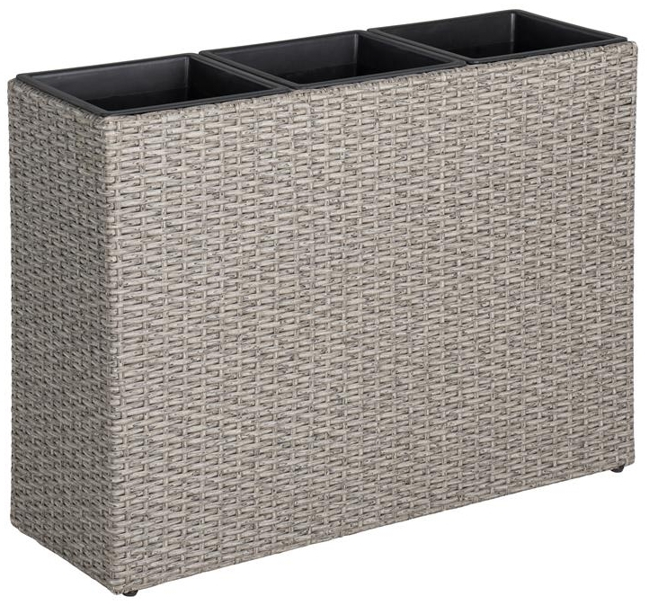 ESTEXO Hochbeet Polyrattan Blumenkübel Set in Grau-Mix bietet eine stilvolle und praktische Lösung für Ihre Pflanzen. Dieses 3er Set ist sowohl für den Innen- als auch für den Außenbereich geeignet und überzeugt durch seine UV- und Wetterfestigkeit. Die einfache Reinigung und die Möglichkeit, es als Sichtschutz oder Raumtrenner zu nutzen, machen es besonders vielseitig. Mit einem wiederverschließbaren Wasserabfluss und verstellbaren Füßen ist es ideal für unebene Böden. **Highlights** - UV- und wetterfest für langlebige Nutzung im Freien - Einfach zu reinigen für mühelose Pflege - Wiederverschließbarer Wasserabfluss mit Gummidichtung - Verstellbare Füße zum Ausgleich von Unebenheiten - Ideal als Sichtschutz oder Raumtrenner **Produkteigenschaften** - Außenmaße gesamt (LxBxH): 77 x 27 x 60 cm - Innenmaße Einsätze (LxBxH): 22 x 22 x 24,5 cm - Überstand (Rand) der Töpfe: ca. 1,5 cm - Material Gestell: Metall mit Polyrattan Umrandung - Material Blumentöpfe: Kunststoff - Farbe: Grau-Mix