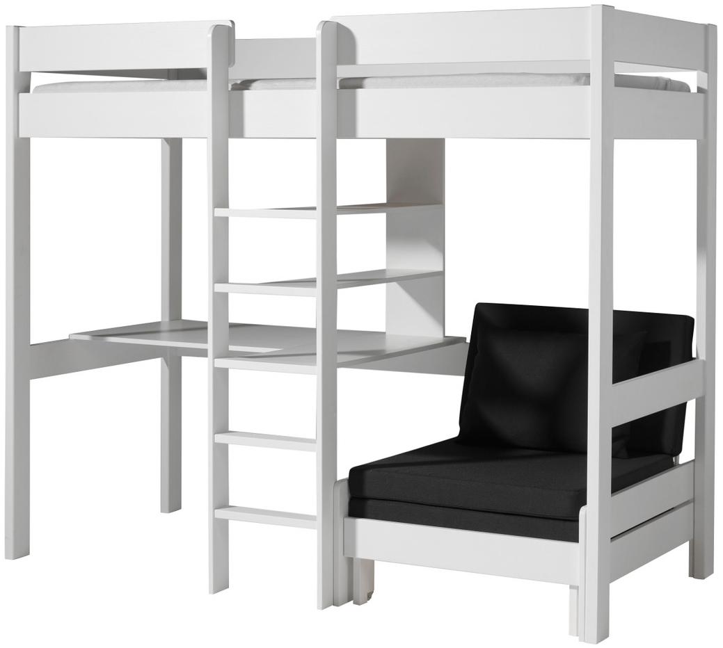 Hochbett mit Schreibplatte und Sesselbett Pino Kiefer Weiß