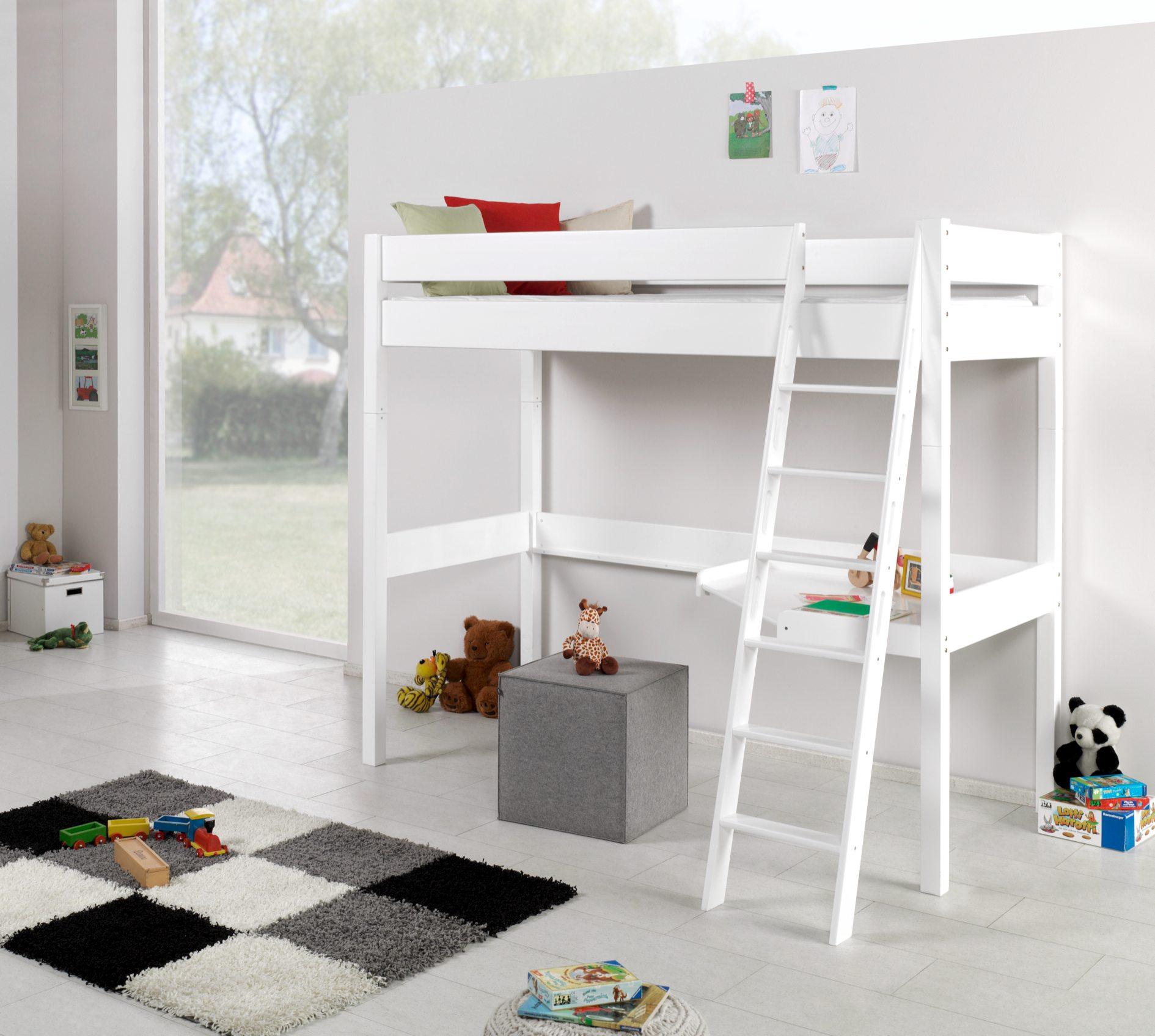 | Name | Hochbett RENATE Buche massiv weiß lackiert, mit Schreibtisch |
