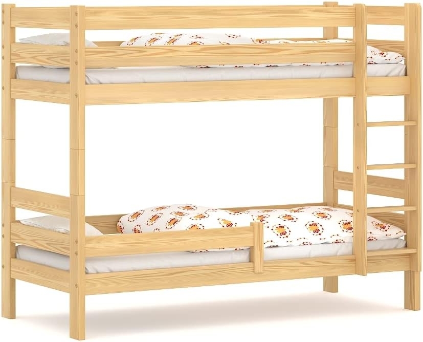 in HochbettenWNM Group 2in1 Etagenbett oder 2 Einzelbetten - Hochbett für Kinder Sophie - Stockbett mit Rausfallschutz und Lattenrost - Absturzsicherung Doppelstockbett - Jugendbett 80x190 cm - Kiefer