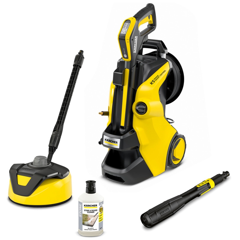 - Der Kärcher K 5 Premium Smart Control verfügt über eine Bluetooth-Verbindung, die eine Integration mit der Kärcher Home & Garden App ermöglicht.