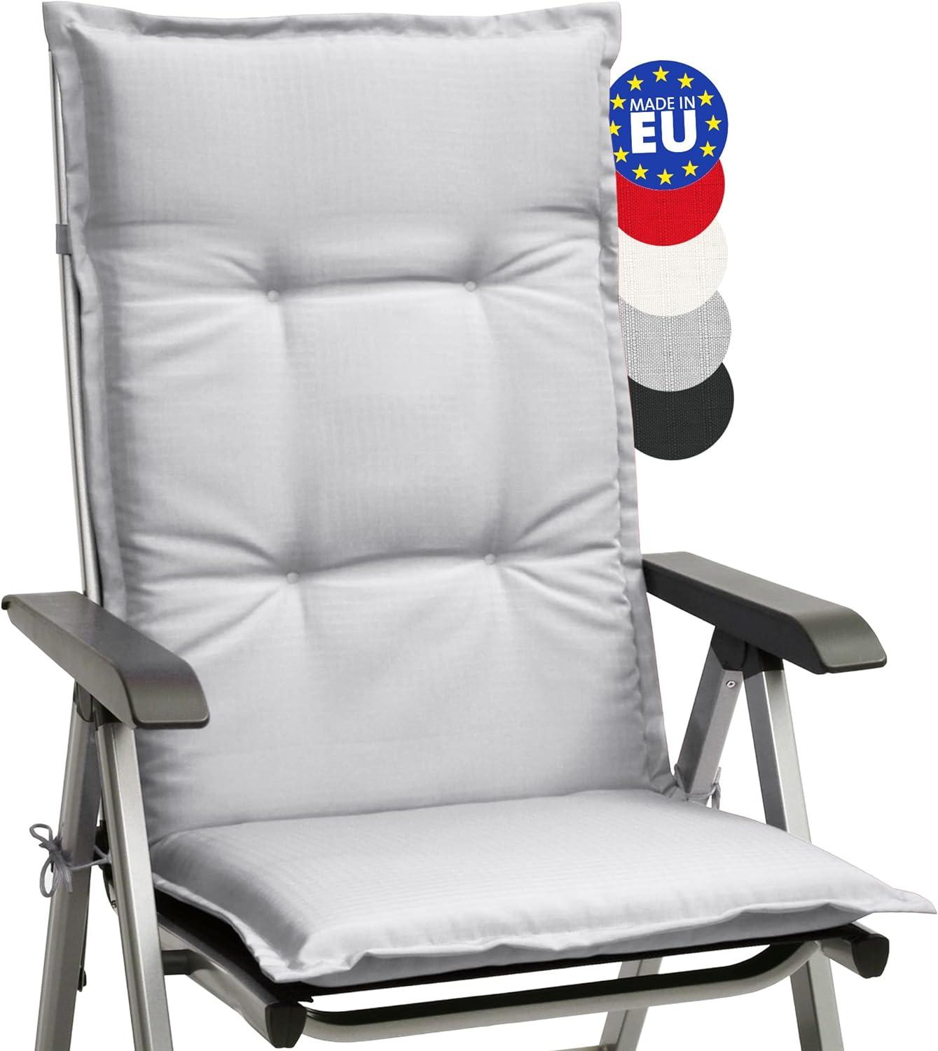 Die Beautissu Hochlehner Auflage Base HL in Hellgrau ist die ideale Ergänzung für Ihren Gartenstuhl. Sie bietet optimalen Komfort durch hochwertigen Schaumstoff und einen rutschfesten Halt dank der Befestigungsbänder. Mit den Maßen 120 x 50 cm und einer Dicke von 6 cm passt sie perfekt auf Ihren Gartenstuhl. Der Bezug aus 100% Polyester ist UV-beständig und schützt vor Ausbleichen. **Highlights** - Bequeme Hochlehner Auflage für entspanntes Sitzen im Garten - Hochwertiger Schaumstoff für optimalen Komfort - Rutschfest und stabil dank Befestigungsbändern - Maße: 120 x 50 cm, Dicke: 6 cm - UV-beständiger Bezug aus 100% Polyester **Produkteigenschaften** - Material: Bezug aus 100% Polyester - Stoff: 160 g/m² - Füllung: gepolsterte 100% Polyurethan Schaumplatte mit Polyestervlies ummantelt - UV Lichtechtheit: 5 - STANDARD 100 by OEKO-TEX unter der Prüfnummer 17.HGB.26231 HOHENSTEIN HTTI