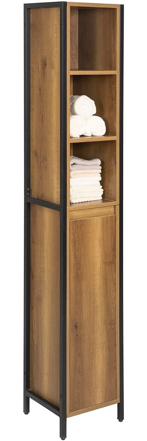| Name | Badschrank mit 3 offenem Fächern und 1 Tür Holz Metall Braun BZR62-PF |