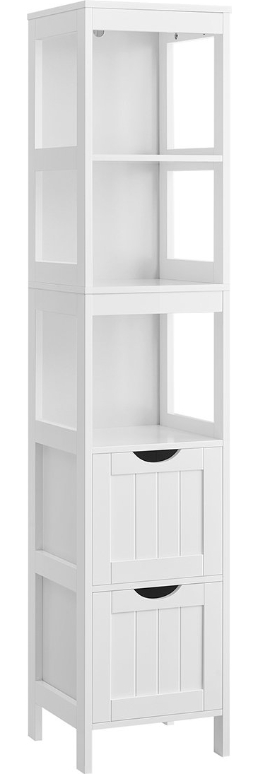 Vasagle Badezimmerschrank mit 2 Schubladen und 3 offene FächerMDF, 30 x 30 x 141,5 cm, Weiß