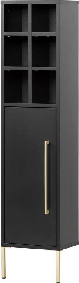 in HochschränkeSchildmeyer Gloria Highboard mit offenen FächernHolzwerkstoff, Schwarz/Gold, 130,6 x 30,4 x 21,8 cm