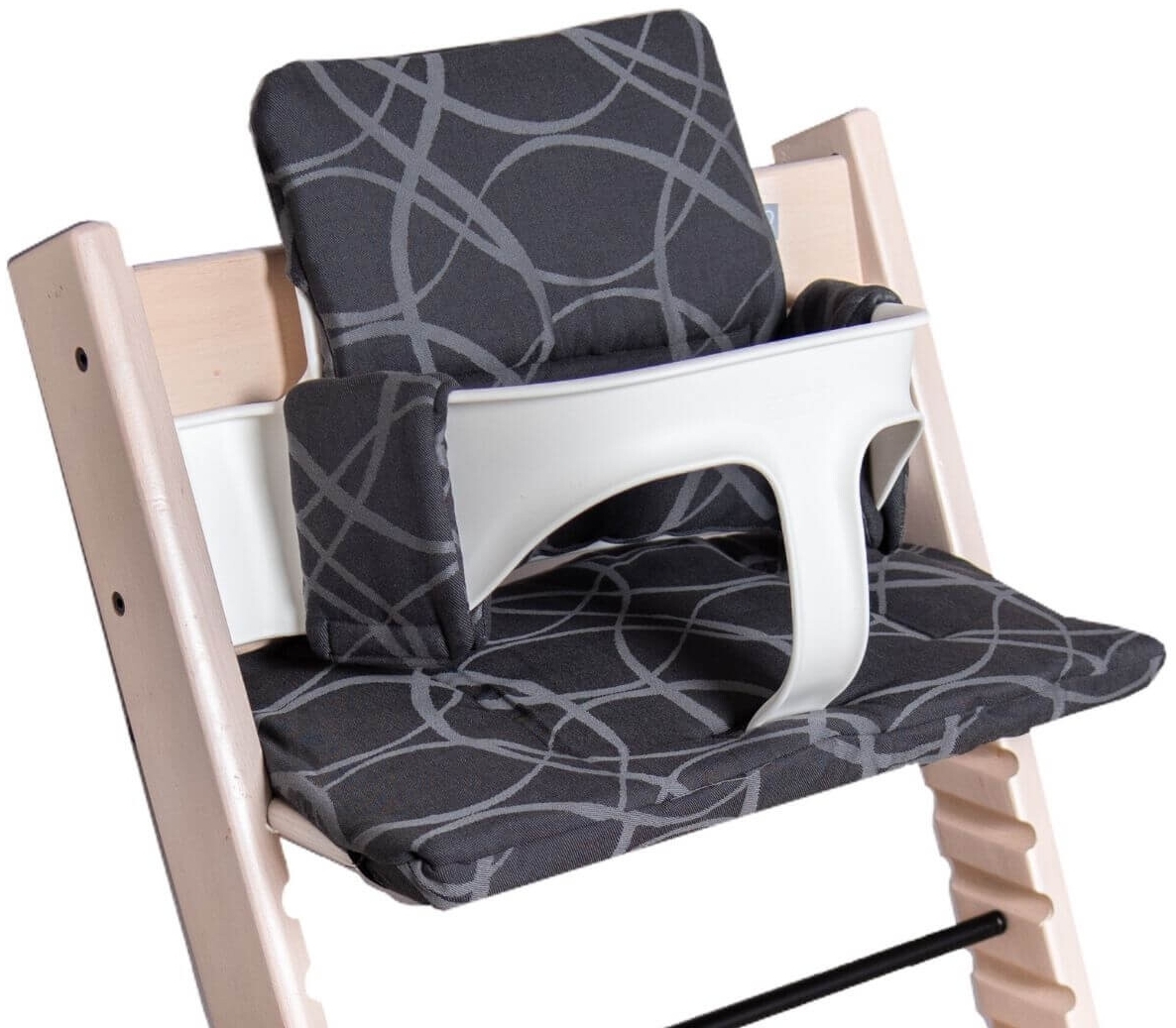 Die Sitzauflage Design Verona bietet Ihrem Baby höchsten Komfort auf dem Hochstuhl. Hergestellt aus Hoppediz Biobaumwoll-Tragestoffen, ist das Kissen angenehm gepolstert und pflegeleicht bei 40 °C waschbar. Es ist speziell für den Tripp Trapp Hochstuhl zugeschnitten und lässt sich einfach überziehen. Das Rückenkissen wird sicher mit einem Klettverschluss befestigt und kann auch mit montiertem Baby-Set oder Essbrett verwendet werden. **Highlights** - Hergestellt aus Hoppediz Biobaumwoll-Tragestoffen für hohen Komfort - Pflegeleicht, waschbar bei 40 °C - Speziell auf den Tripp Trapp Hochstuhl zugeschnitten - Einfaches Überziehen des Sitzkissens - Rückenkissen mit Klettverschluss für sicheren Halt **Produkteigenschaften** - Maße Sitzpolster: ca. 41x23 cm - Maße Rückenpolster: ca. 43x25 cm - Geeignet für montiertes Baby-Set oder Essbrett