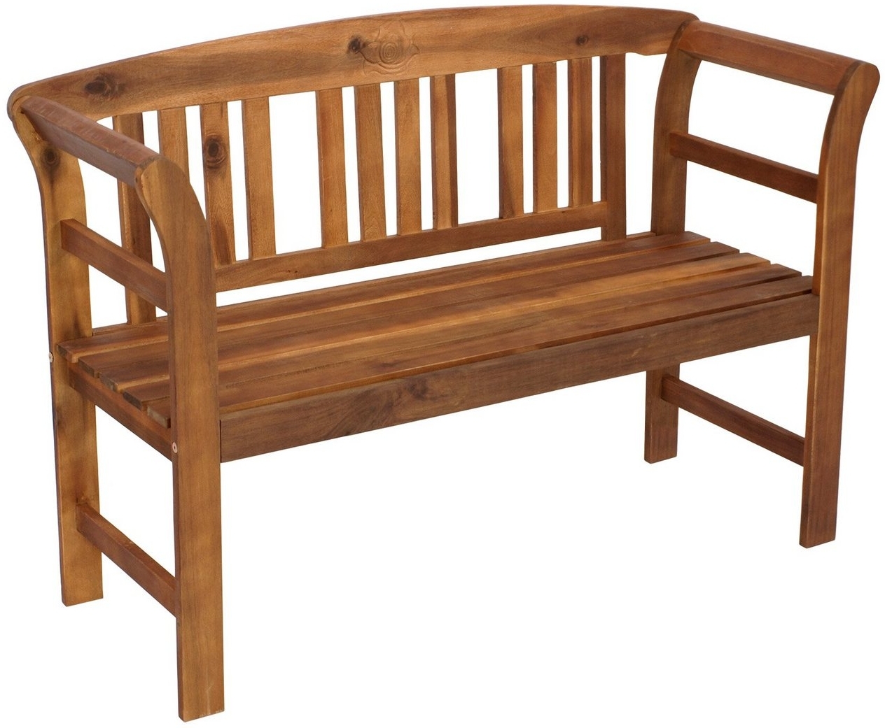 Elegante Landhausbank ROSARIO. Das geschwungene Rückenteil mit dem Rosenmuster im Rückenteil verleiht der Bank ein ländlich-rustikales und zugleich elegantes Aussehen. Das Akazienholz wird ab Werk geölt. Akazie gehört zu den robustesten Holzarten überhaupt und benötigt keine spezielle Pflege. Gelegentliches nach ölen genügt. Maße: Breite 120cm, Sitzbreite: 101cm, Tiefe: 45cm, Sitztiefe: 41cm, Höhe: 83cm, Sitzhöhe: 43cm.