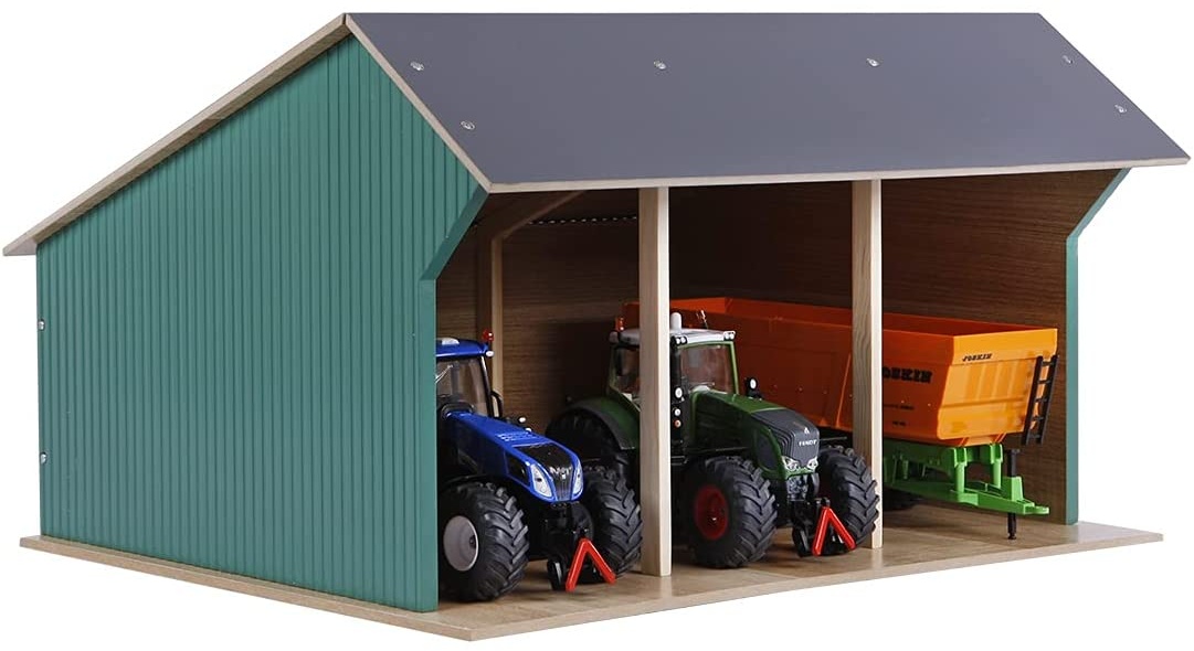 - Die Kids Globe Spielzeug-Scheune ist im Maßstab 1:32 gefertigt und bietet Platz für drei große Traktoren.