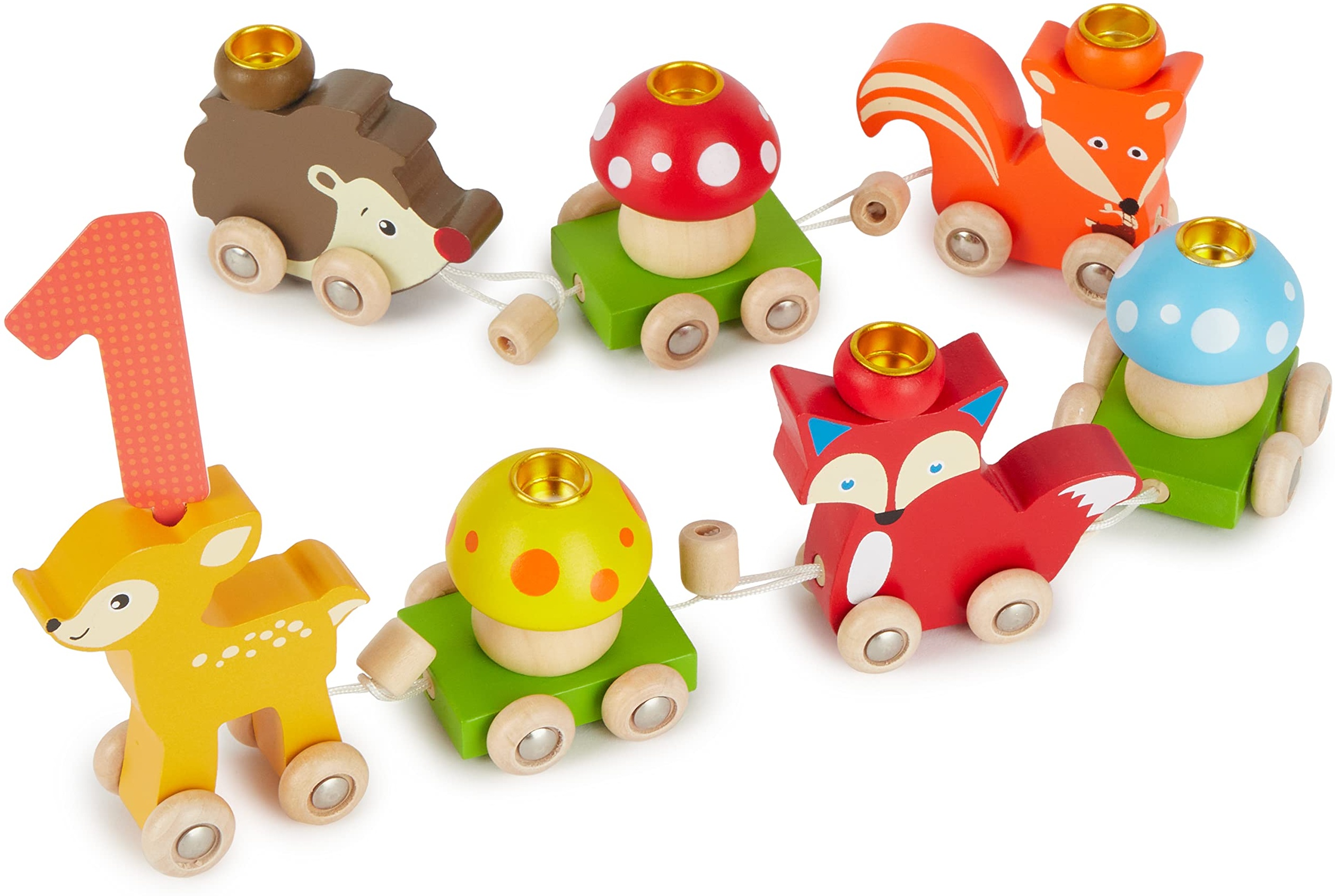 in HolzeisenbahnenBieco Holz Geburtstagszug Waldtiere mit Zahlen 0-9 Jahre | 17 tlgLänge ca. 59 cm | Kerzen Geburtstagszug | Holz Eisenbahn Kinder Geburtstagszug Holz | Geburtstagskerzen Zahlen | Holz-Zug