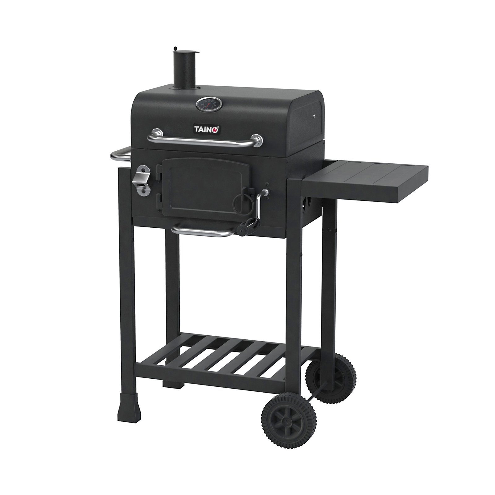 - Der TAINO HERO Smoker ist ein kompakter Holzkohlegrill mit einem höhenverstellbaren Kohlerost und einem klappbaren Seitentisch