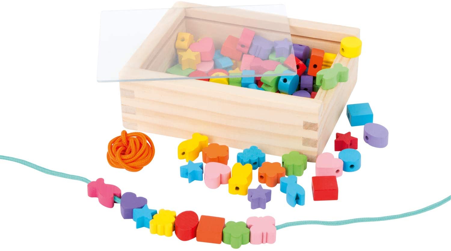 in Holzperlensmall foot 11060 Fädelkreativaus FSC 100%-zertifiziertem Holz, Farben & Formen, inkl. Bänder, ab 3 Jahren Spielzeug