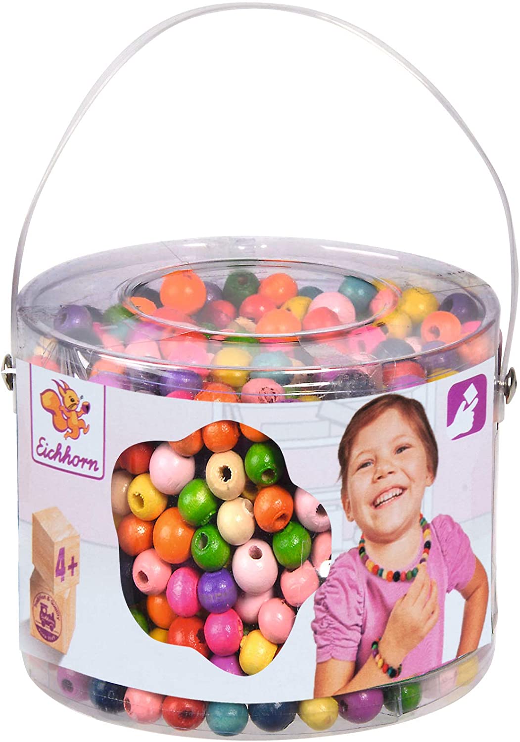 - Das Eichhorn Holzperlen Set enthält 800 Teile in verschiedenen Farben und Formen, die kreative Schmuckkreationen ermöglichen.