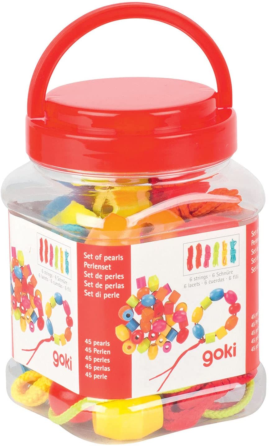 Gollnest & Kiesel GmbH & PerlensetZylinder = 2cm, H= 2 cm, Holz,: 45 Perlen, 5fach Sortiert, 6 Schnre, per Set