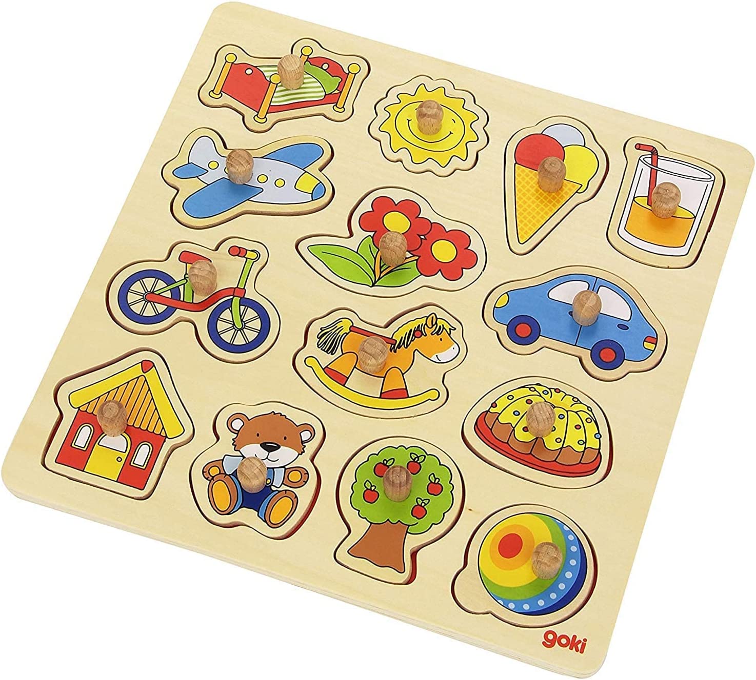 - Das Steckpuzzle von goki enthält 14 große Holzteile, die speziell für kleine Hände geeignet sind.