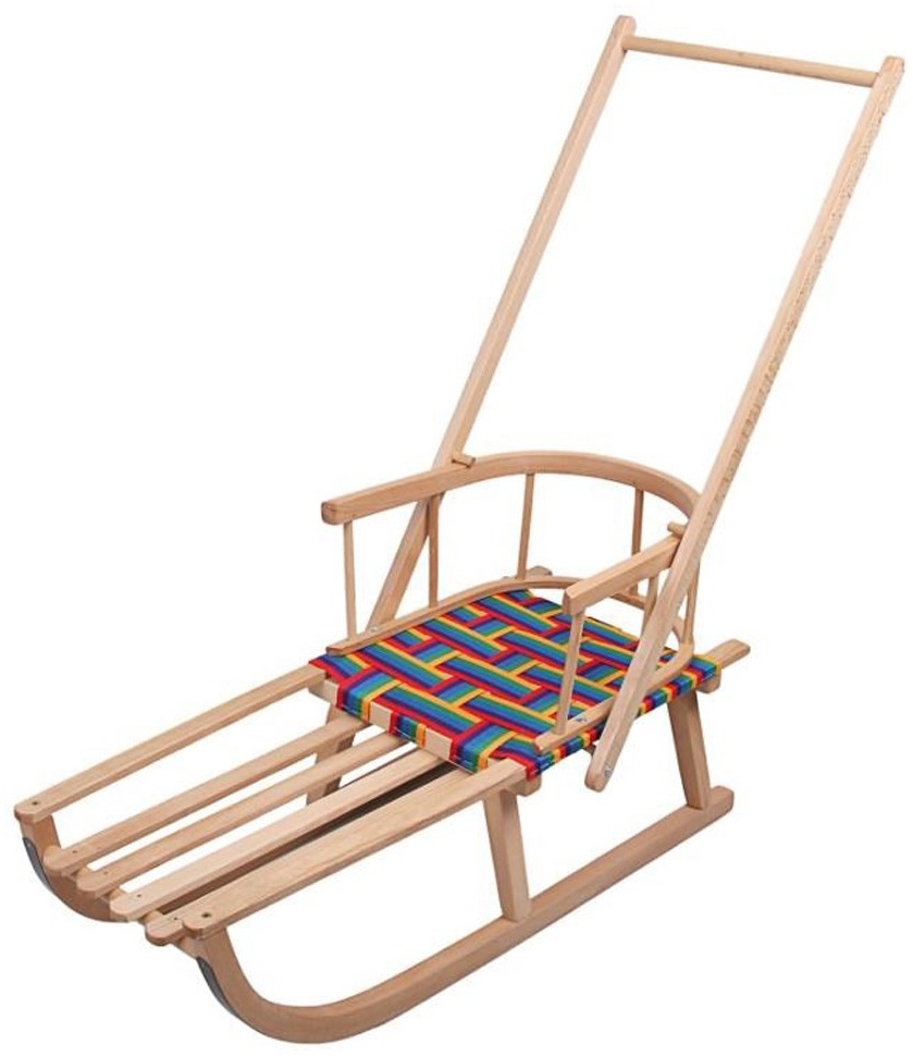 Premium Holzschlitten mit PolsterLehne u. Griff Schlitten Holz Rodel Davos