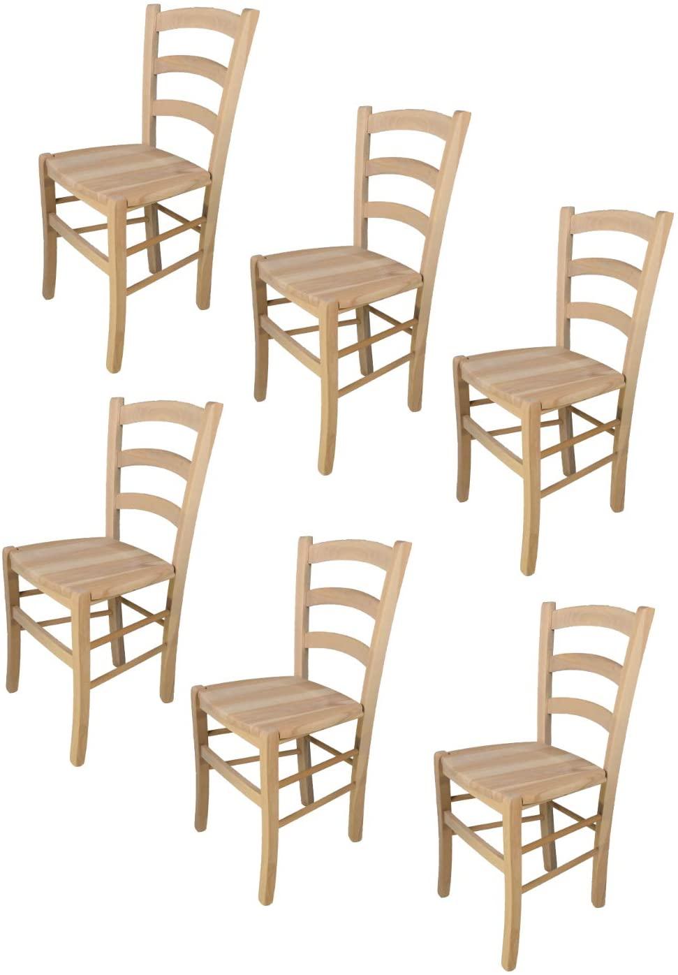 t m c s Tommychairs - 6er Set Stühle Venezia für Küche und Esszimmerrobuste Struktur aus poliertem Buchenholz, unbehandelt und 100% natürlich, Sitzfläche aus poliertem Holz