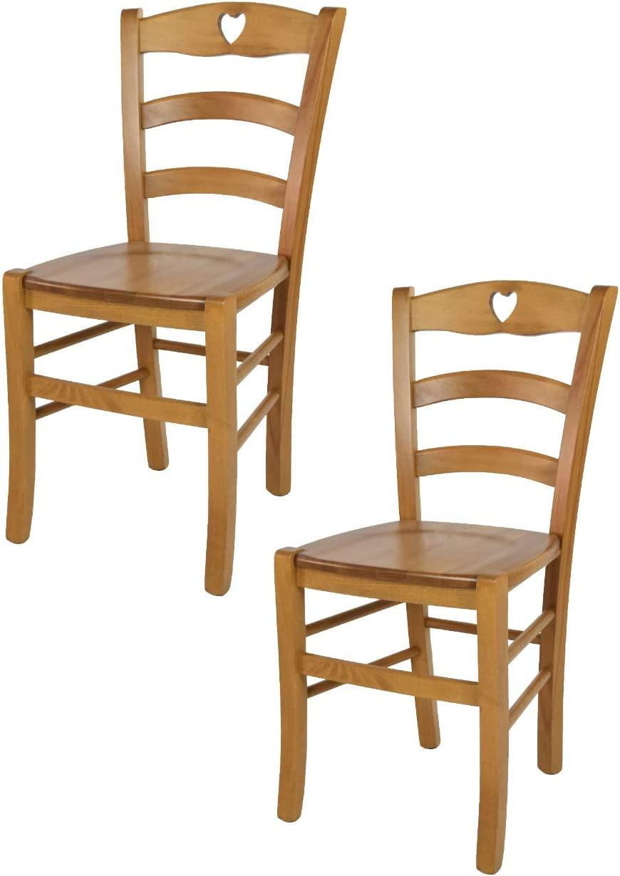 Tommychairs - 2er Set Stühle Cuore für Küche und Esszimmer. Die robuste Struktur aus lackiertem Buchenholz in der Farbe Eichenholz und die Holzsitzfläche bieten Komfort und Langlebigkeit. Mit einem traditionellen und eleganten Design ist dieser Stuhl ideal für verschiedene Einsatzbereiche. Er wird komplett aufgebaut geliefert und ist 100% MADE IN ITALY. **Highlights** - Robuste Struktur aus lackiertem Buchenholz - Sitzfläche aus Holz für zusätzlichen Komfort - Traditionelles und elegantes Design für einen einzigartigen Stil - Perfekt für Küche, Esszimmer, Bars und Restaurants - Komplett aufgebaut geliefert für sofortige Nutzung **Produkteigenschaften** - Materialien: Robuste und hochwertige Struktur aus lackiertem Buchenholz und Sitzfläche aus Holz - Maße: Gesamthöhe 88 cm, Gesamtbreite 43 cm, Gesamttiefe 46 cm, Sitztiefe 37 cm, Sitzhöhe 47 cm - Belastbarkeit: max. 120 kg mit gleichmäßig verteiltem Gewicht auf dem Sitz - Handwerksprodukt mit leicht variierenden Maßen **Lieferumfang** - 2er Set Stühle Cuore in der Farbe Eichenholz lackiert - Komplett aufgebaut geliefert