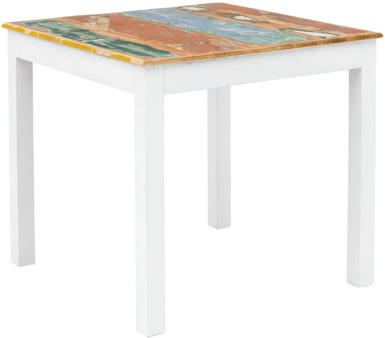 in HolztischeEsstisch Holz massivum Perth 80x80 cm quadratisch recyceltes Hartholz weiß bunt Shabby Chic Landhausstil Küchentisch Esszimmermöbel