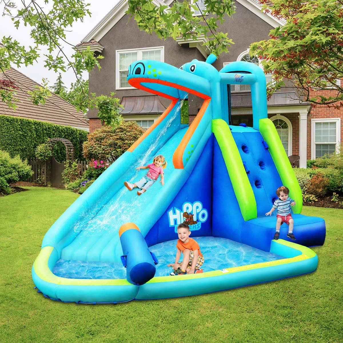 COSTWAY Hüpfburg aufblasbarWasserrutsche Aufblasbare Spielpool, Wasserspielcenter mit Rutsche, Wasserpark Planschbecken 350x300x225cm