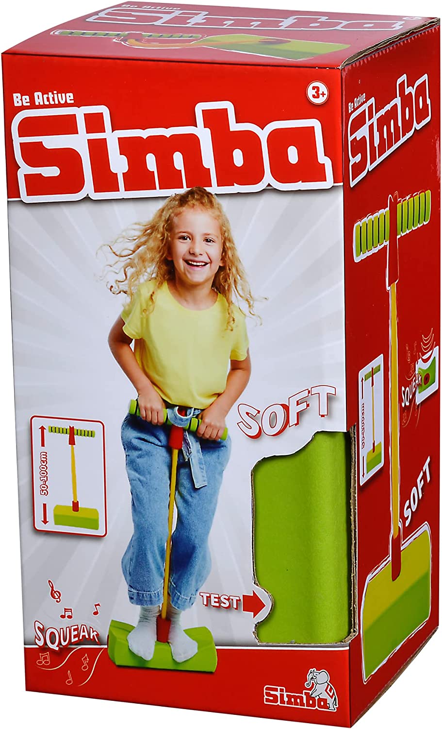 - Sport- und Spielgerät für Kinder - mit dem Pogo Jumper können Mädchen und Jungen um die Wette springen. Dazu einfach auf die weiche Sprung-Plattform stellen, an dem Griff festhalten und losspringen. Der Griff lässt sich von 40cm auf 90cm ziehen. - Mit Quietscher - jeder Sprung der Kinder wird von einem lustigen Quietscher begleitet und sorgt für jede Menge Spaß und gute Laune bei den Kids. - Für drinnen und draußen - der Pogo Jumper kann sowohl im Innenbereich des Hauses oder der Wohnung als auch im Freien wie dem heimischen Garten oder auf Spielstraßen verwendet werden. Die Sprung-Plattform ist extra weich und auch barfuß sehr angenehm. - Fördert die Bewegung - mit dem fröhlich bunten Spielzeug werden die Kinder zum Bewegen animiert und halten sich dabei fit. Für Kinder ab 3 Jahren geeignet. - Simba - Elefantenstarker Spielspaß! Im Zentrum der Produktentwicklung steht die Begeisterung der Kinder. Für Jungen und Mädchen, Klein und Groß. Kinder sollen Spaß haben und gefördert werden.