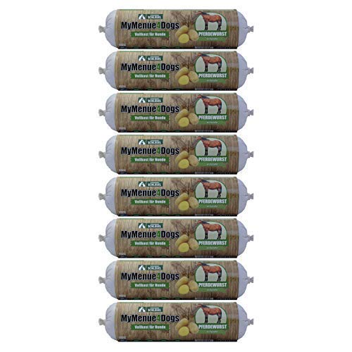 MyMenue4Dogs Hundefutter Pferdewurst8x 800g, Vollnahrung für Hunde, keine Zusatzstoffe, aus Bayern