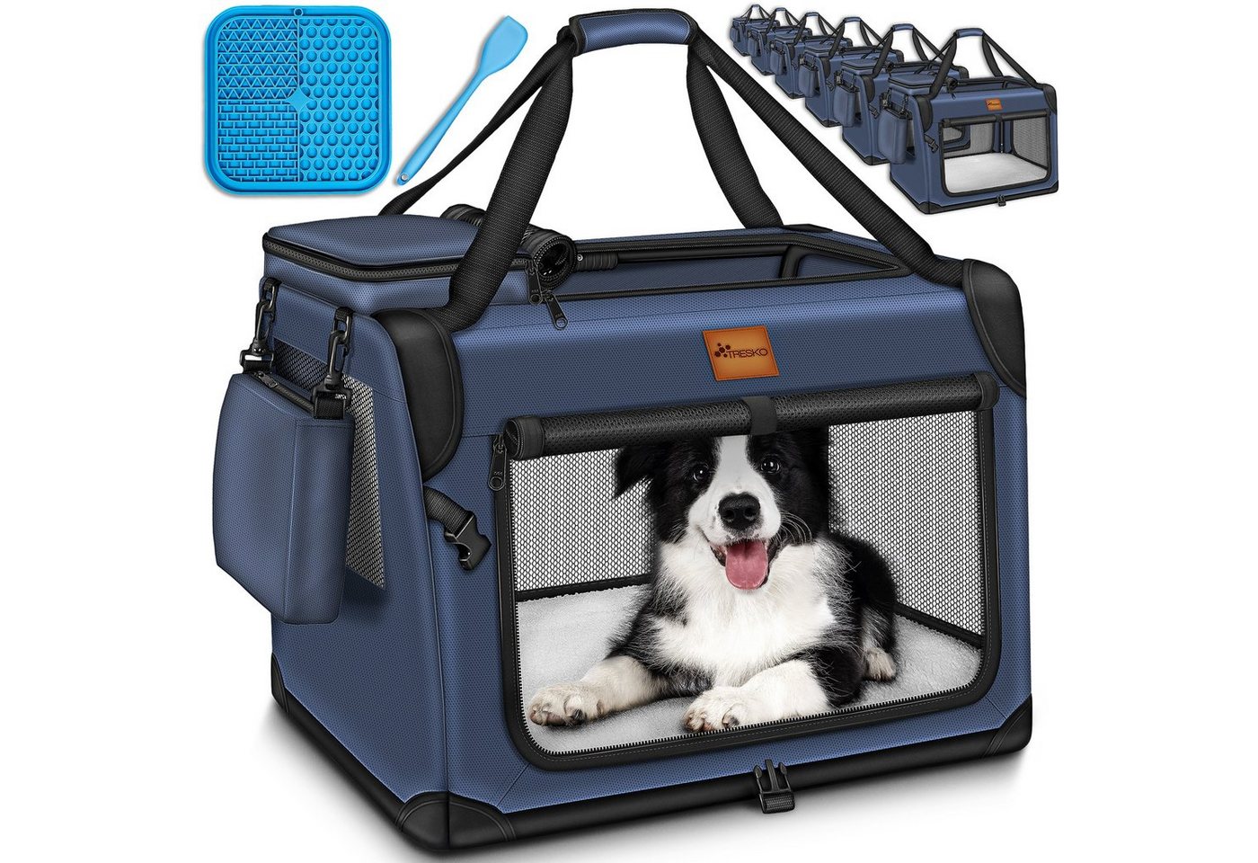 TRESKO Hunde-Transportbox faltbar mit Leckmatte und Spatel bis 15,00 kgatmungsaktives Oxford Gewebe, für Hunde und Katzen, in schwarz