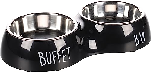 🔥 Deal in Hunde-TransportboxenFlamingo F Divar-Tellerdoppelt, mit Druck, Bar-Buffet, Schwarz, M, 14 cm, 2 x 470 ml