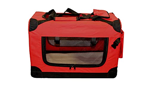 in Hunde-Transportboxenwalexo Faltbare Hundebox Hundetransportbox Katzentransportbox Katzenbox (ROT, S) - Robustes Stahlrohr & Oxford Gewebe, 3 Türen, Platzsparend & Pflegeleicht