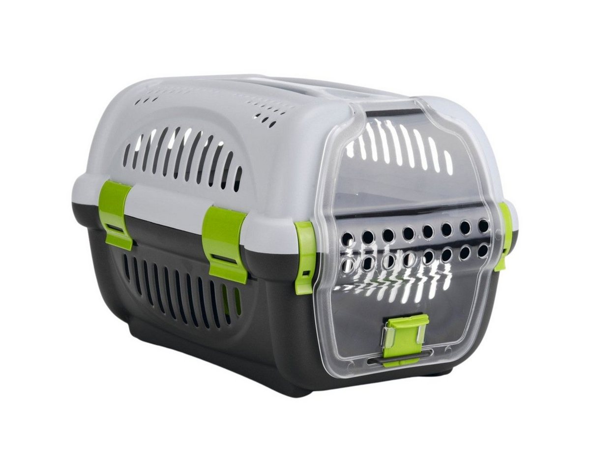 Beeztees Hunde-Transportbox Transportbox Rhino grau/grün für HundeKunststofftür, abnehmbarer oberer Teil