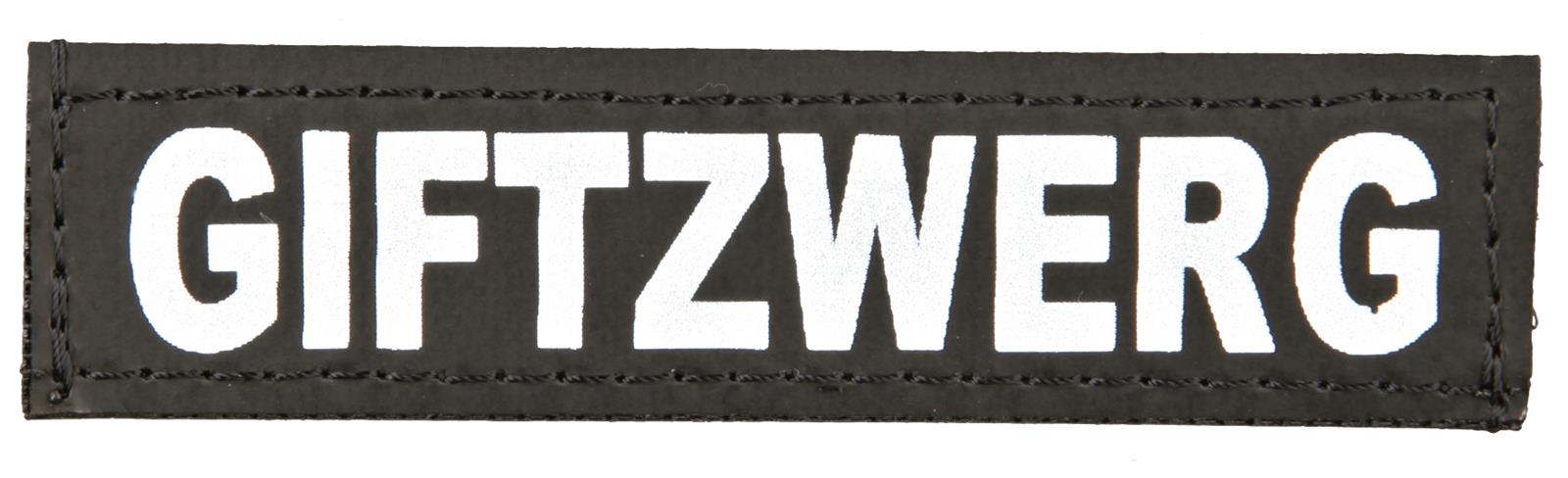 - Der Sticker hat die reflektierende Aufschrift "Giftzwerg", die die Sichtbarkeit erhöht.