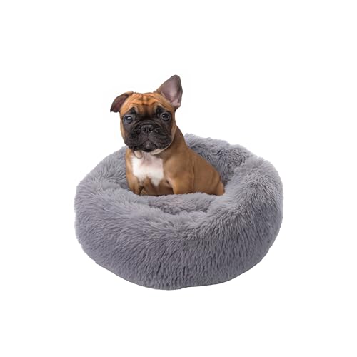 - Dieses Hundebett/Katzenbett in Grau mit einem Durchmesser von 60 cm besticht durch sein flauschiges Design, das Gemütlichkeit vermittelt