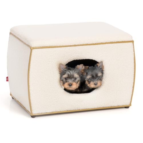 in HundebettenCanadianCat Company Hundebett Nelson - Design-Hundehütte inklusive Kissen für kleine Hunde | Perfekt für kuschelige Rückzugsorte | TEDDY weiß-Gold | ca. 54 x 35 x 37,5 cm
