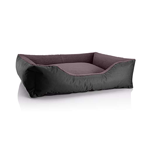 in HundebettenBedDog Hundebett Teddy Hundesofa aus Cordura und Microfaser-Velours, waschbares Hundebett mit Rand, Hundekissen Vier-eckig, Größe XL, schwarz-braun