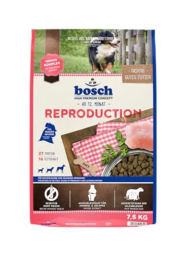- Bosch Reproduction 7,5 kg ist ein spezialisiertes Futter, das für hochtragende und säugende Hündinnen ab der 5. Trächtigkeitswoche entwickelt wurde