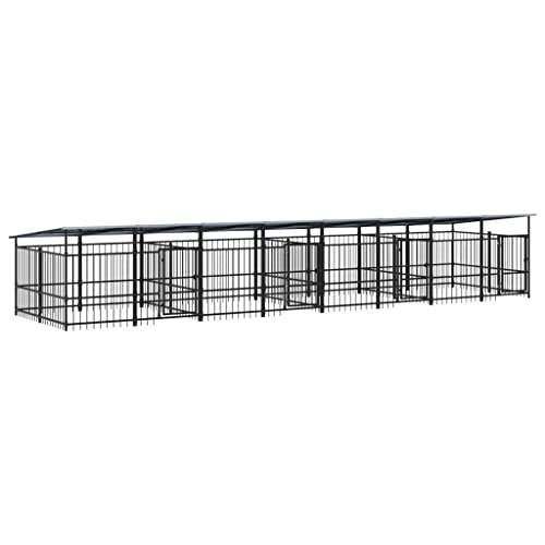 in HundehüttenvidaXL Outdoor Hundezwinger Dach Stahl 15,02m² Hundehütte Hundekäfig Hundehauspulverbeschichtet, vielseitig einsetzbar